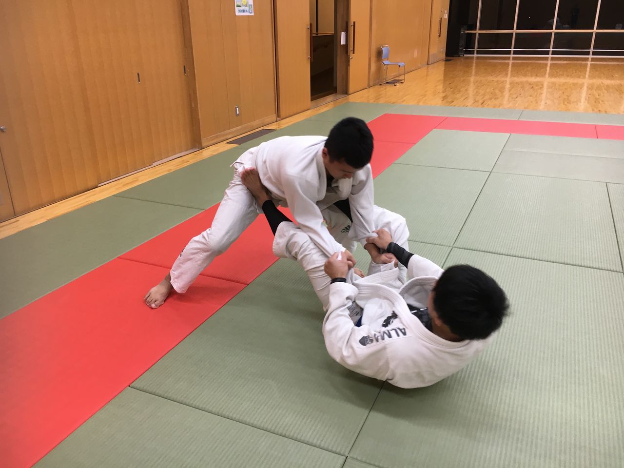 4、柔術着をお持ちでない方は、取りあえずは柔道着や空手着、ファスナーの付いていないスウェットの上下などでも練習していただけます。
