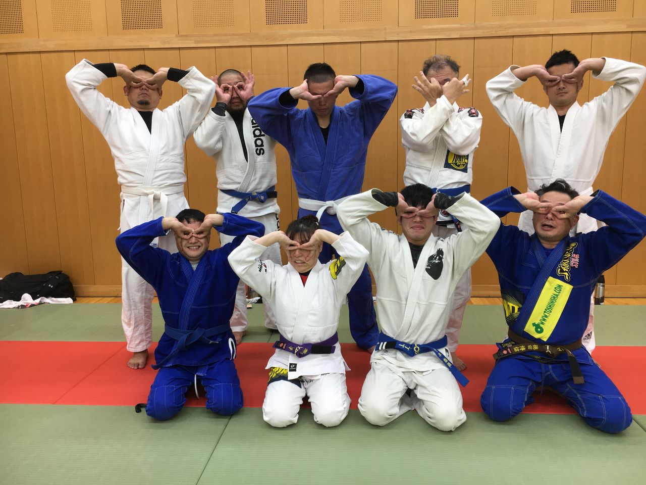 白帯8人、青帯3人、紫帯2人
