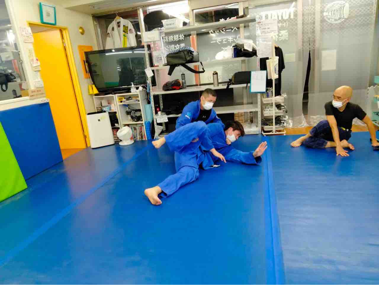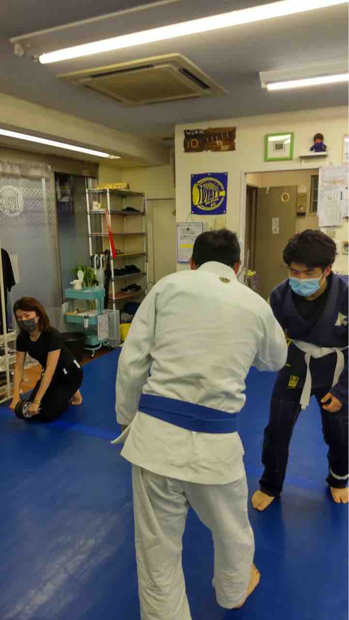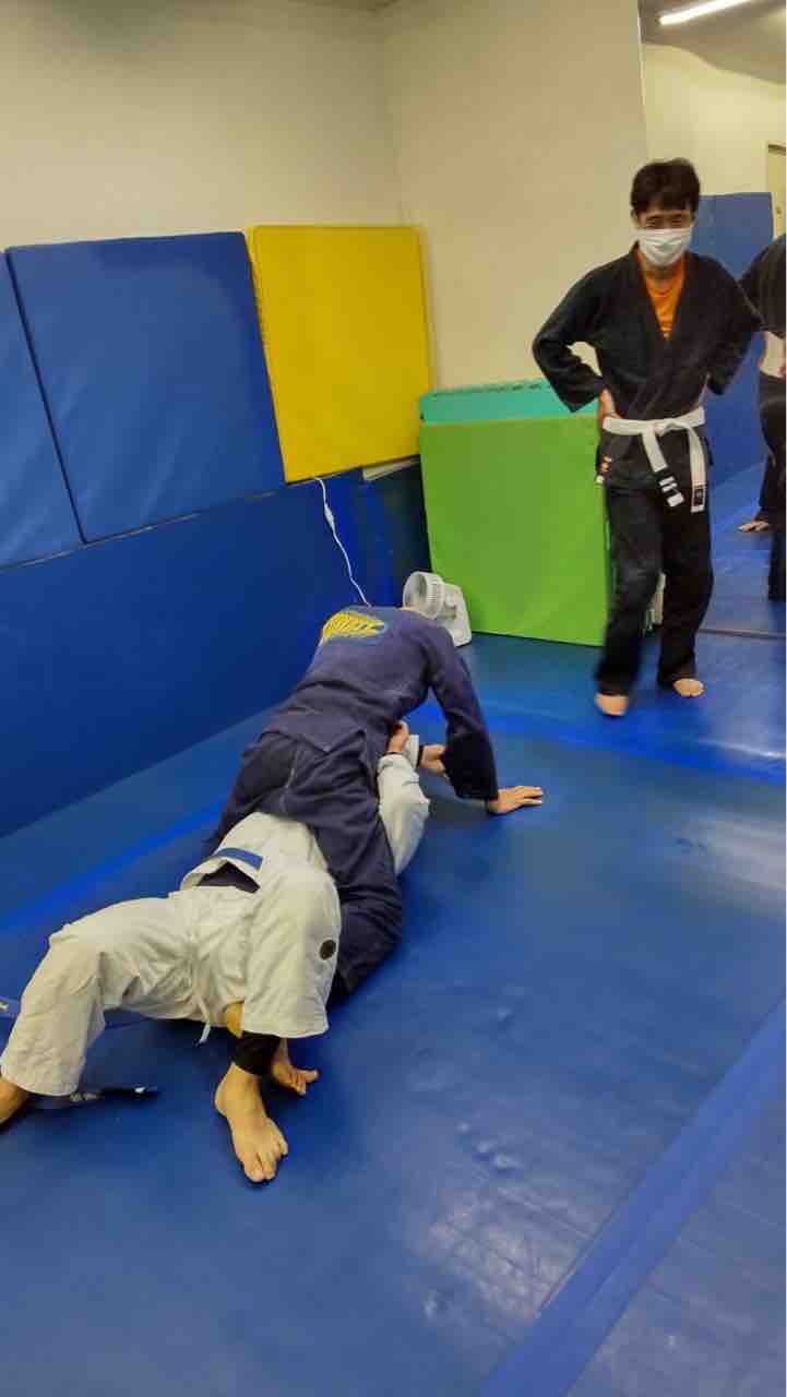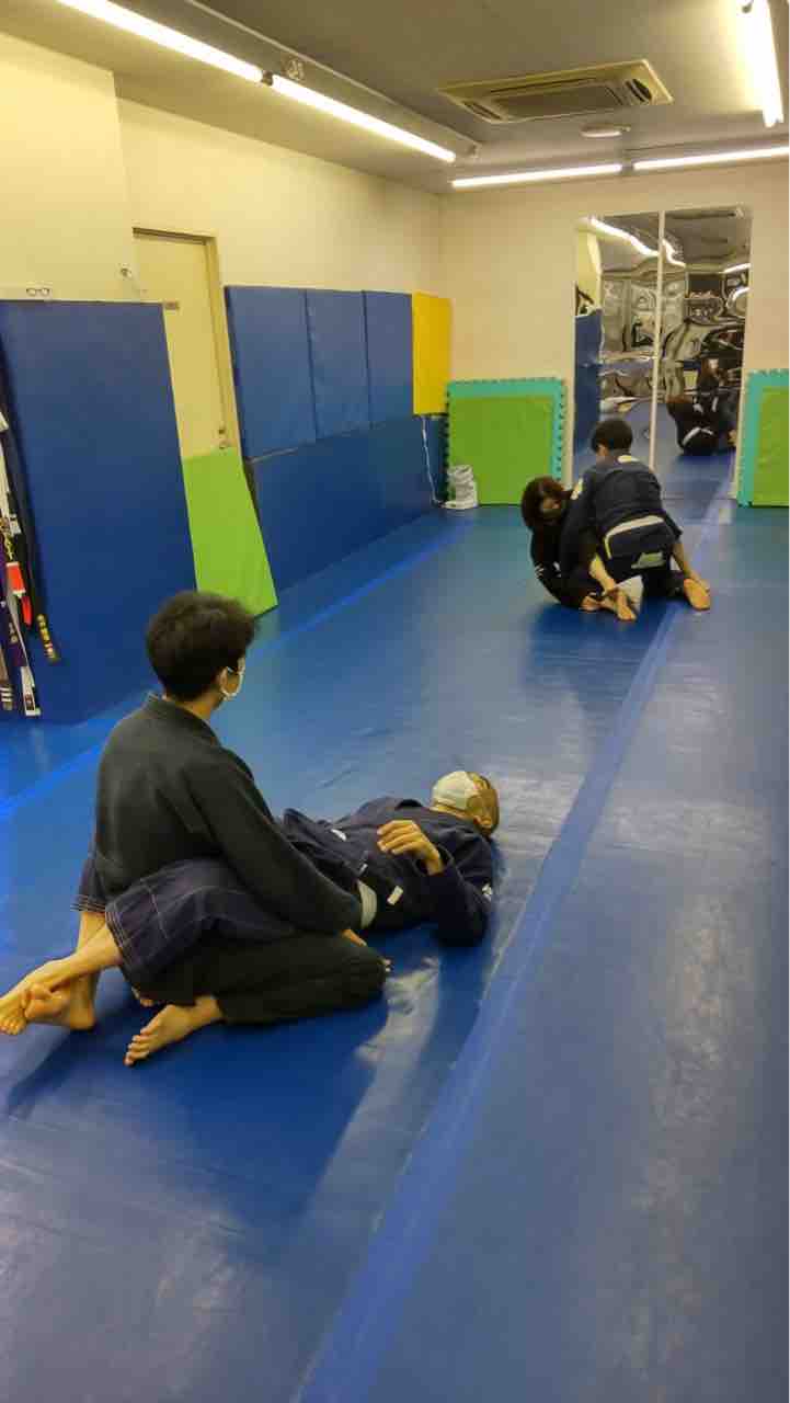 息あげ、準備体操各種、準備運動各種、マット運動各種、技の練習(ハーフガードからの展開各種、リバースデラヒーバ、など)、フリースパーリング、他。