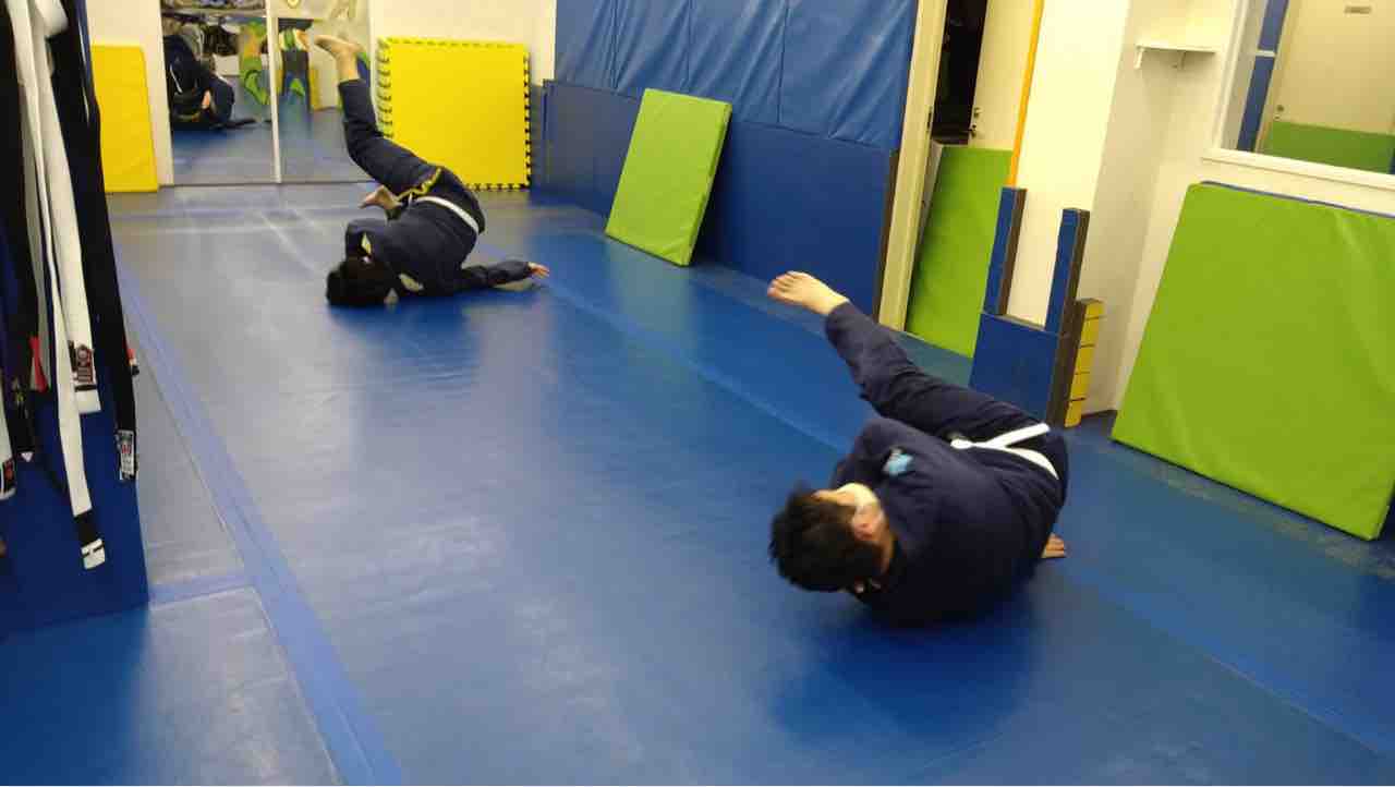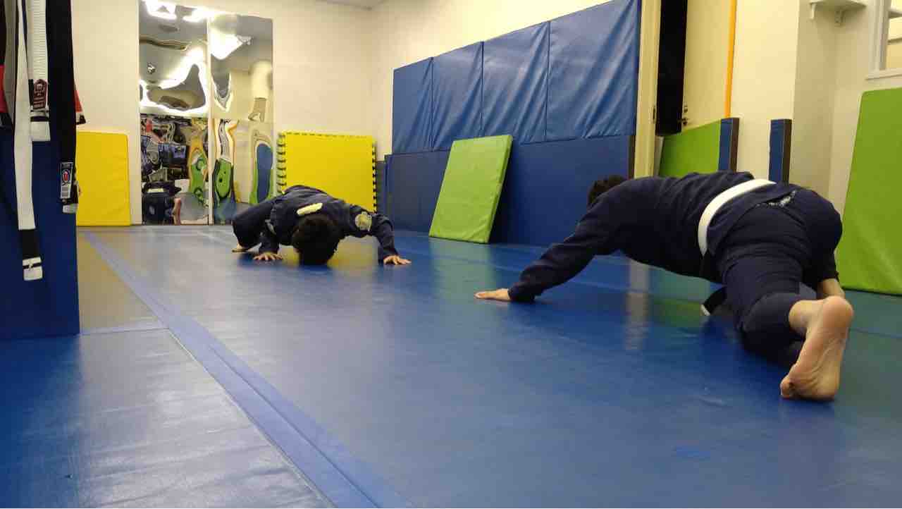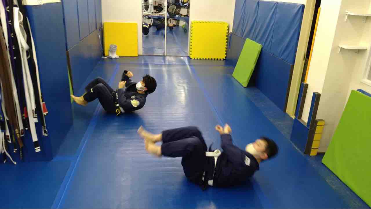 ベーシッククラス(準備体操、基礎運動、マット運動、基本的な技の打ち込みなど)