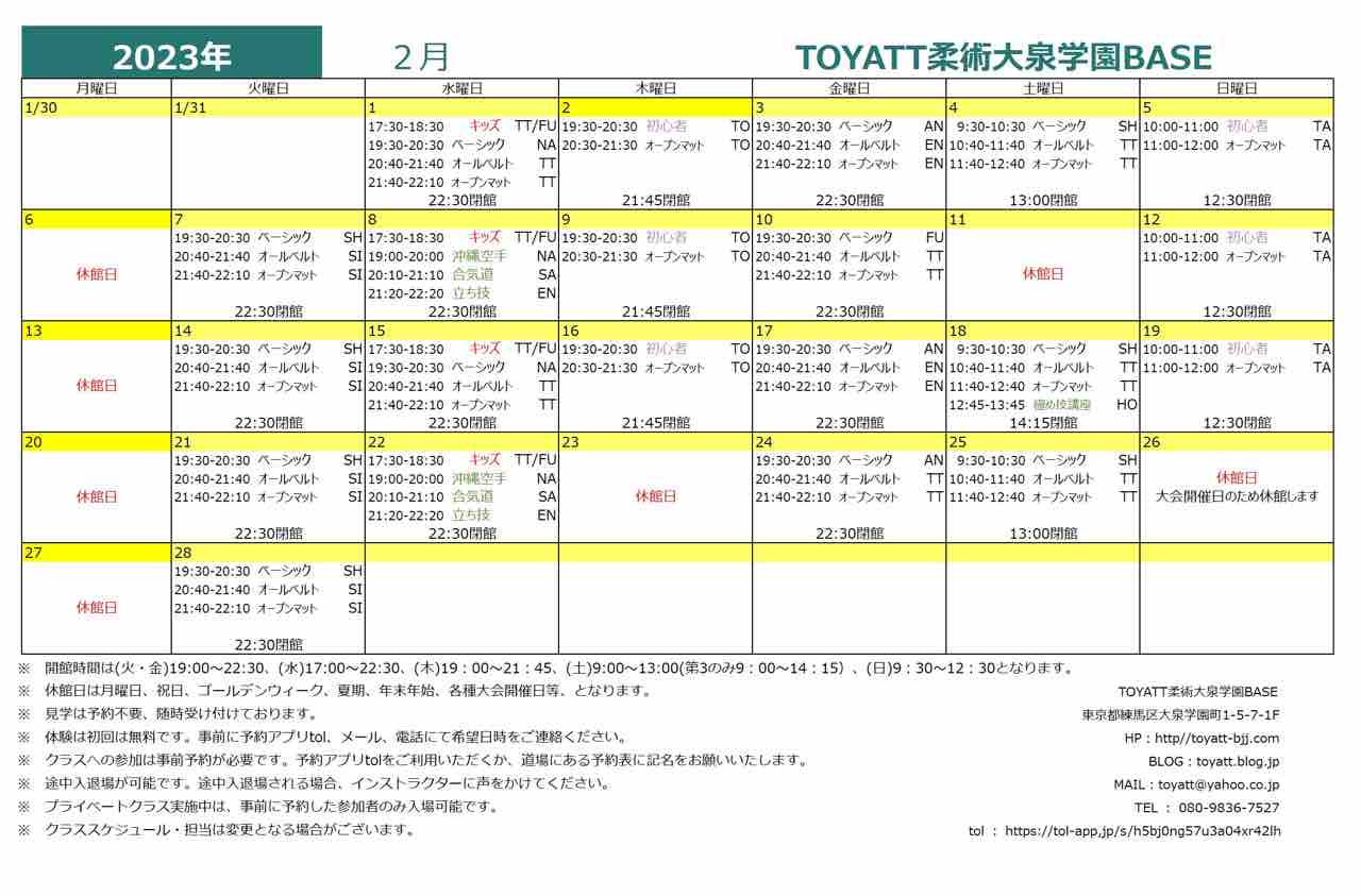 ⇩2月の月間スケジュール