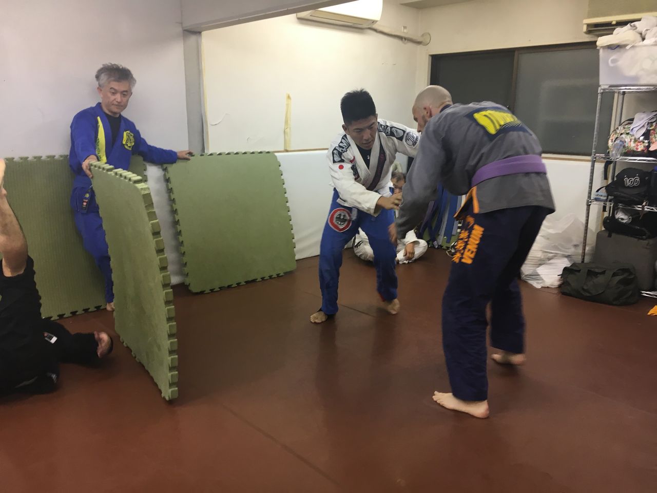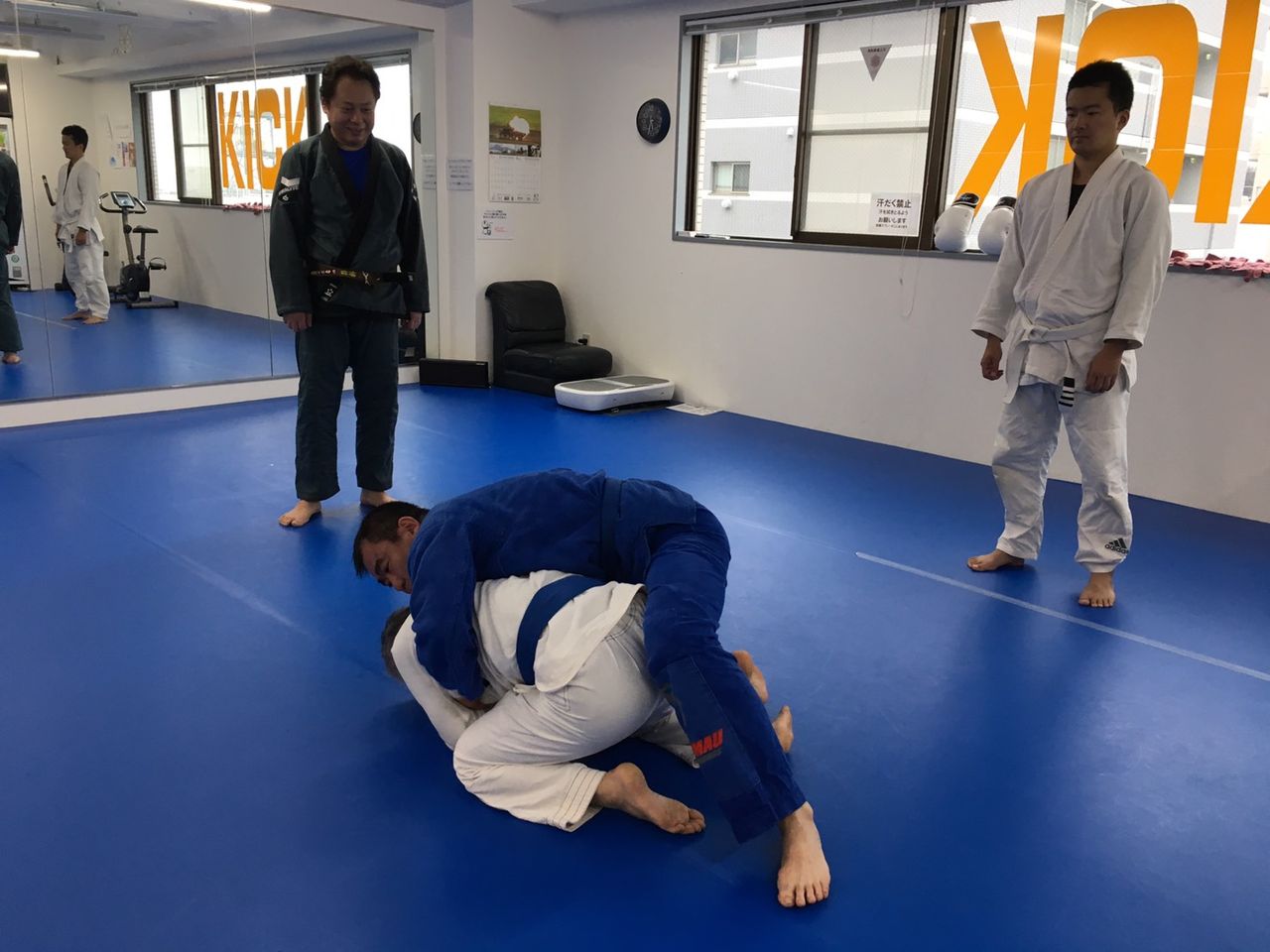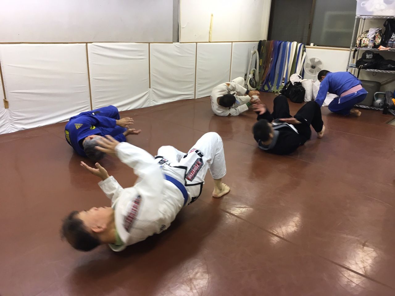 4、柔術着をお持ちでない方は、取りあえずは柔道着や空手着、ファスナーの付いていないスウェットの上下などでも練習していただけます。
