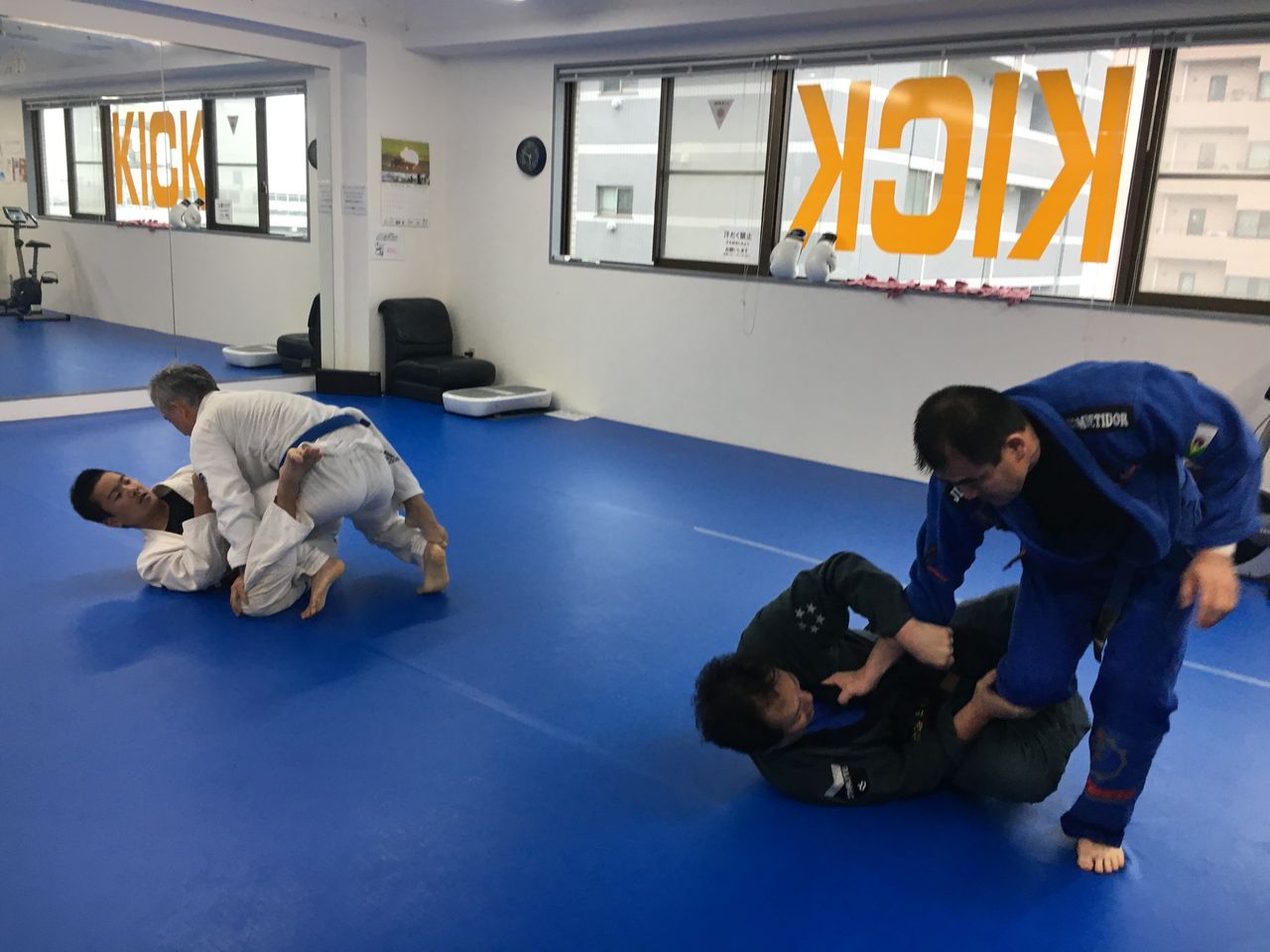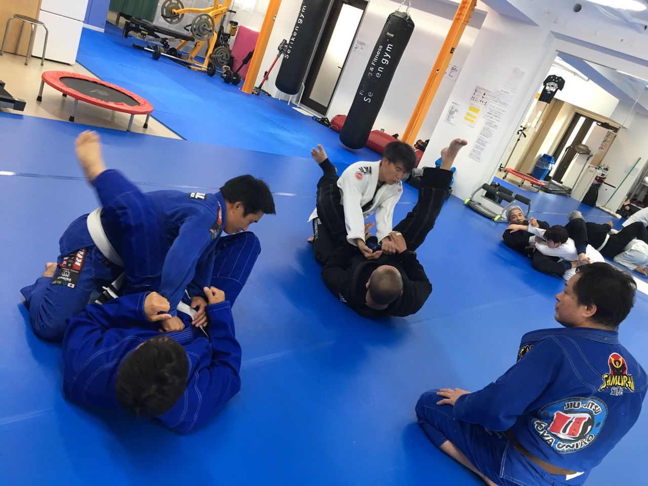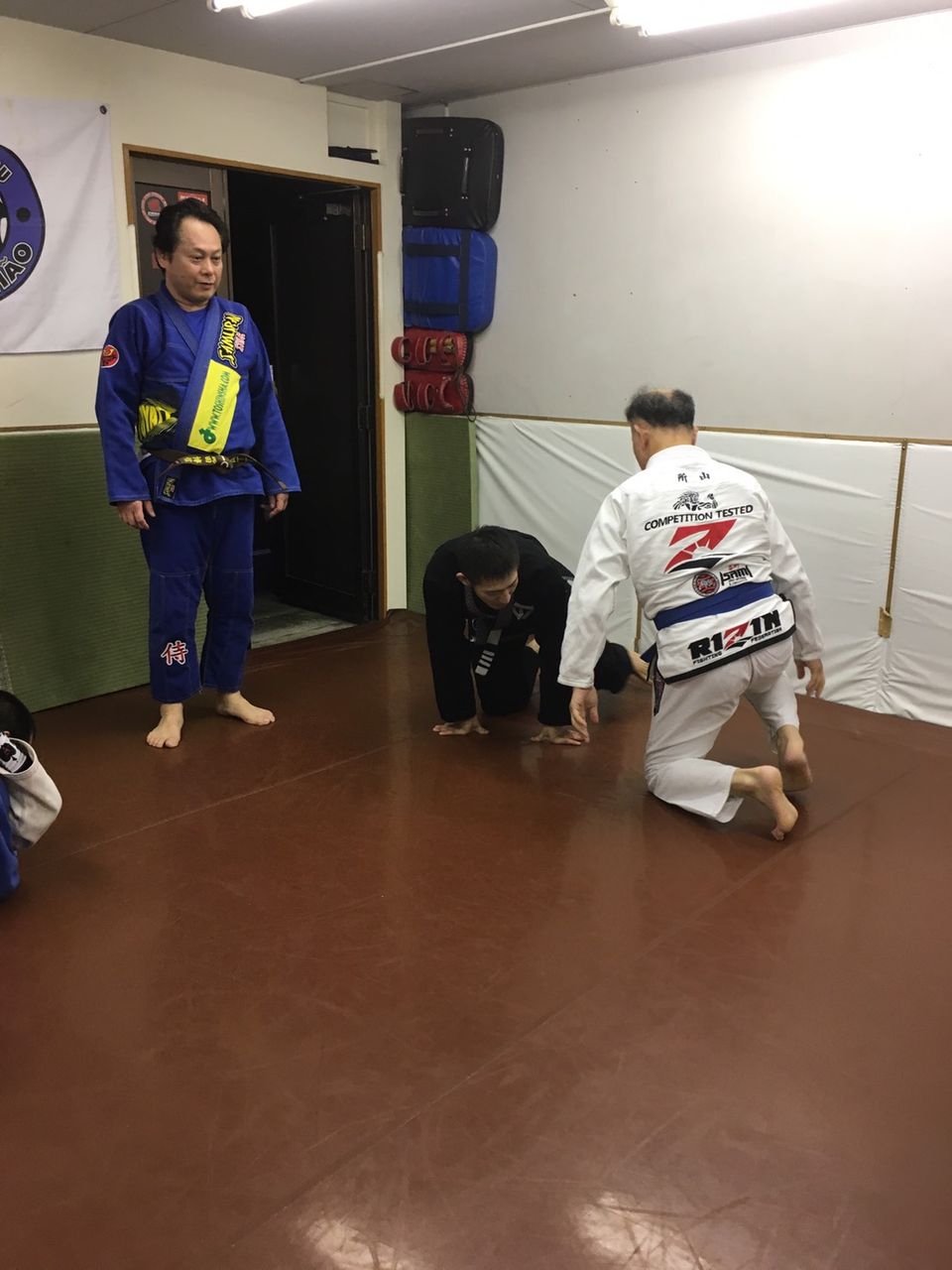 4、柔術着をお持ちでない方は、取りあえずは柔道着や空手着、ファスナーの付いていないスウェットの上下などでも練習していただけます。
